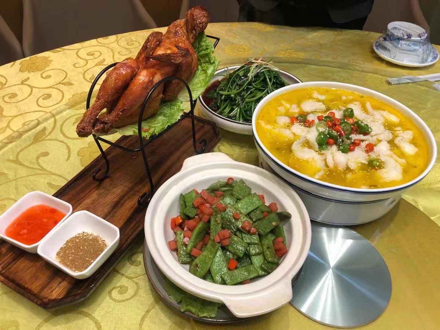 皮酥肉嫩汁水足的沙滩烤鸡,光闻味道就香的让人流口水,配上新鲜的时蔬、小炒,不管是聚餐还是宴客都逼格满满!再点上一壶小酒或者一扎饮料,节日氛围满分!