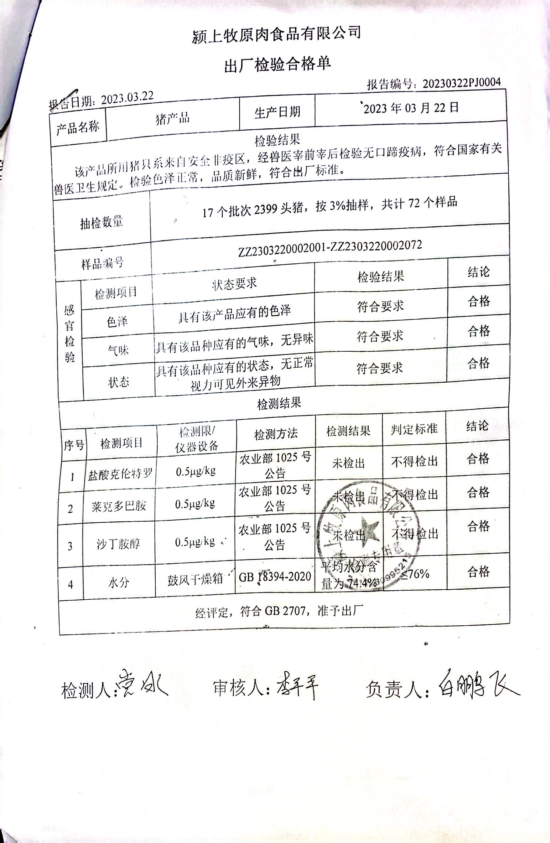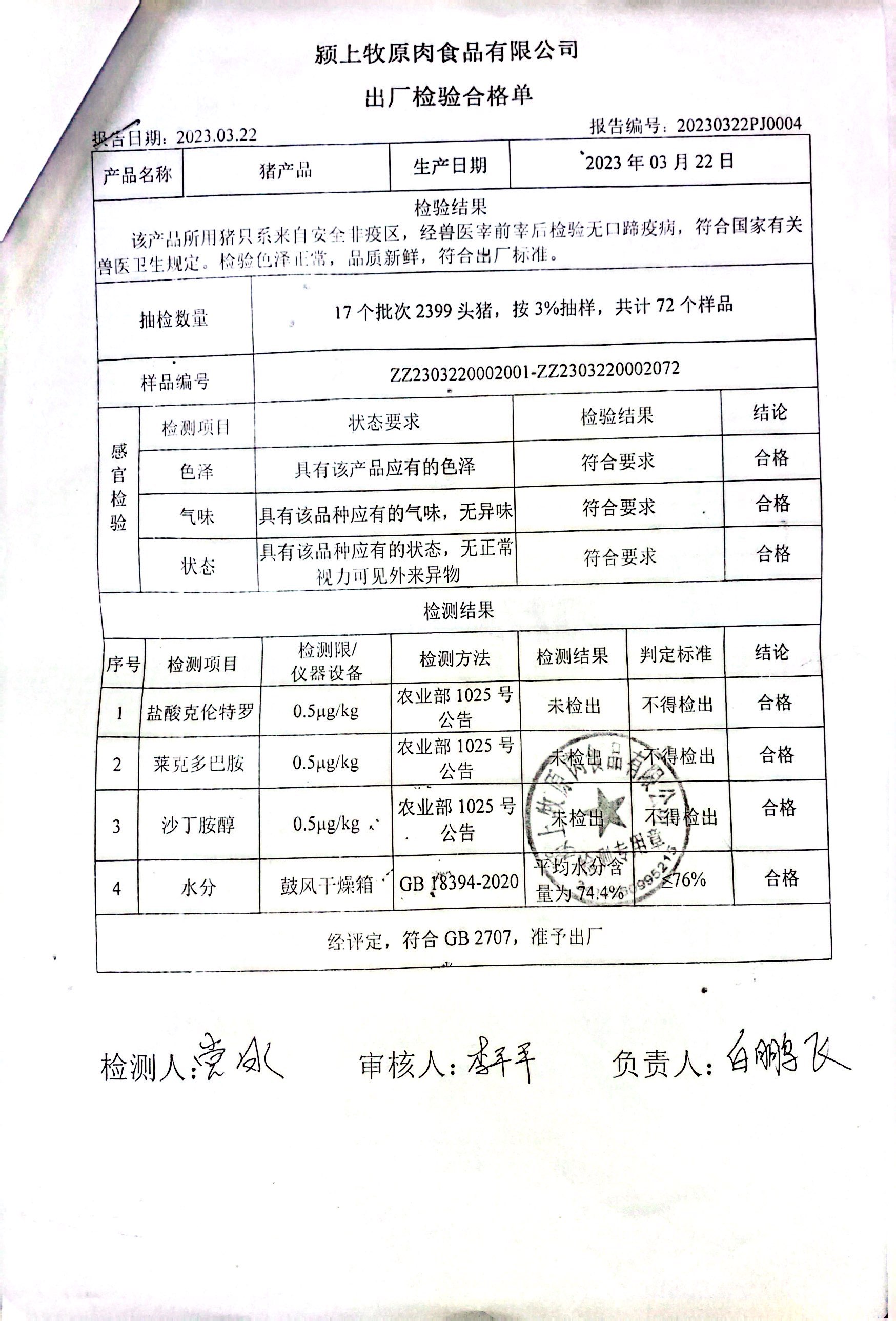 摩登7营养餐检测报告3.20-3.24