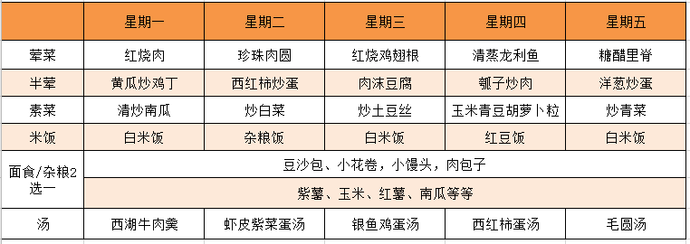 摩登715元宝宝餐:一荤+一半荤+一素+米饭+面食/杂粮+一汤 荤素搭配,注重宝宝钙、维生素、蛋白质等等营养元素的吸收