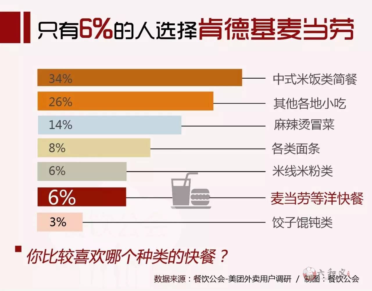 值得注意的是,明确表示愿意选择肯德基、麦当劳的用户只有6%。尽管从2015年开始甚至更早,肯德基和麦当劳的颓势已经显现,但这个数据多少还是出乎摩登7的意料。早些时候,肯德基的母公司百胜已经剥离其中国业务,麦当劳也正在出售中国区的特许经营权。