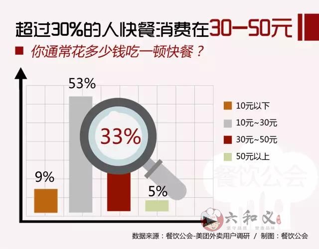 在人均消费上,53%接受调查的用户表示吃快餐的花费通常在10-30元,这部分人也是快餐消费的主流人群,他们的选择以中式简餐为主。值得注意的是,33%的人表示他们的快餐消费在30-50元,这个数据接近整个餐饮业的人均消费。在消费升级的趋势下,快餐和正餐的界限正在消失。尤其对年轻人来说,他们可能已经很难定义什么是快餐了。