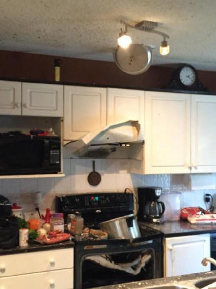 7.你可能不信,我花了三秒钟才找到天花板上的锅子,不过到底是发生了什么?锅子怎么会飞到天花板上去?