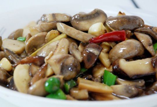 原料:竹笋、木耳。青椒、红椒、蘑菇、盐。蚝油
