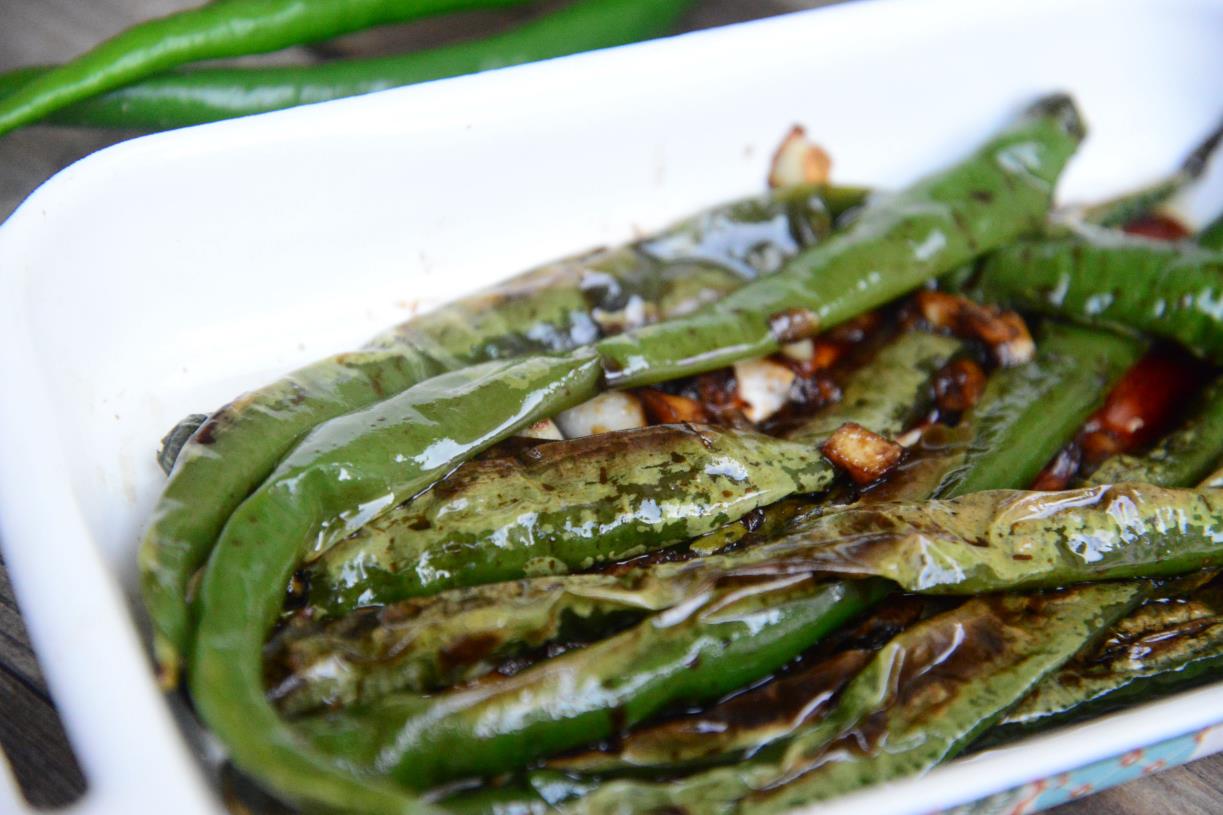 - 青椒洗净,捏扁