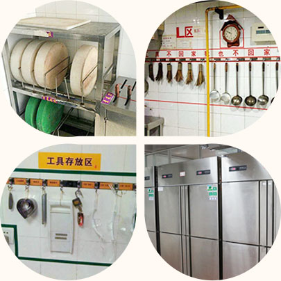 公司全面实行“8S”即“整理”、整顿、清扫、清洁、素养、服务、速度、安全“管理方法,建立了一整套卫生管理体系,从原料采购、加工、烹饪、销售到原料贮存,都有科学、完善的操作制度和检查制度,注重加工过程的质量控制,确保出品的卫生符合要求。